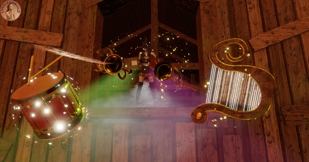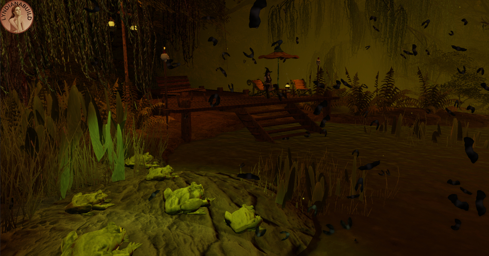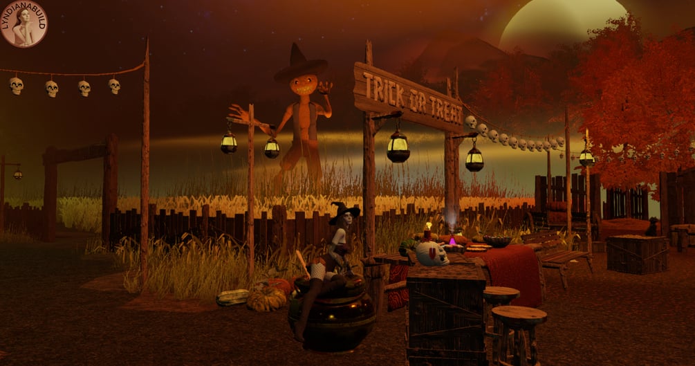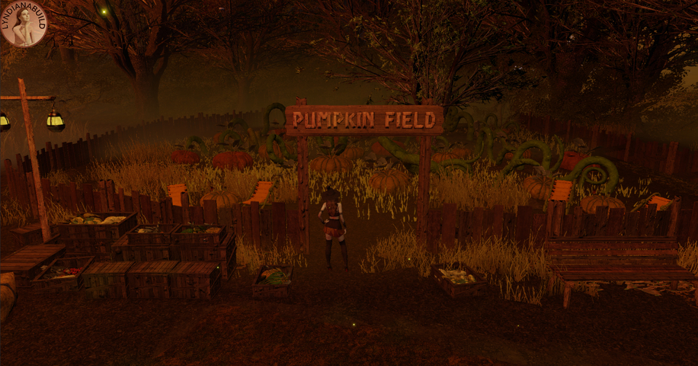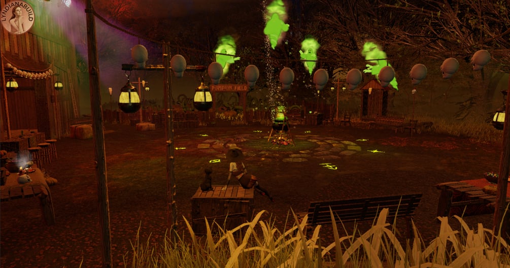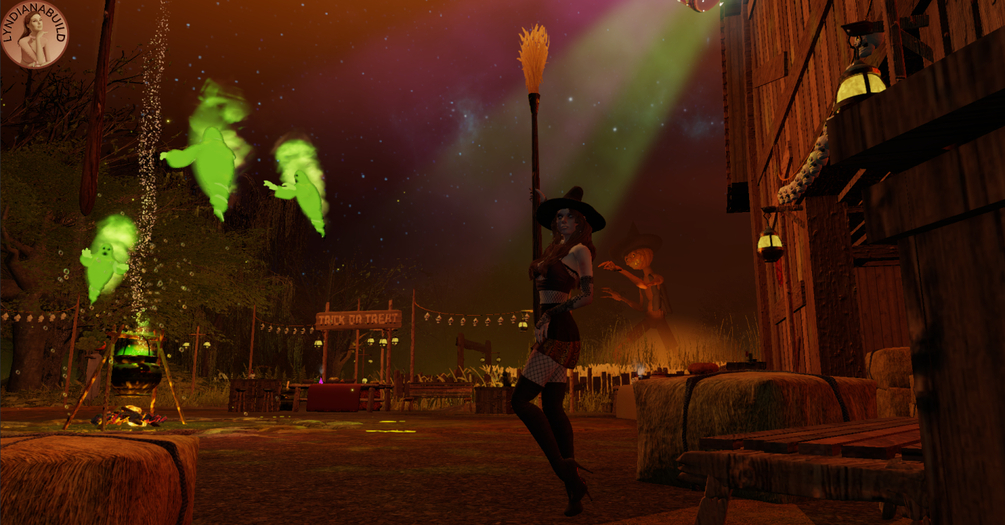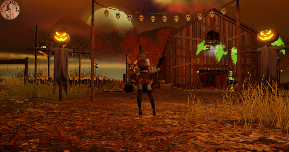 Come and join the witches' party in the dark, damp forest... Here we eat pumpkin pie and drink potions. Witches and other creatures of the night dance around the magic cauldron, rest in the pumpkin patch, splash around in the swamp or gather in the barn... The room contains a barn with hay nests, a field where the terrifying Jack O'Lantern wanders, summoned ghosts, the spectre of the marsh and plenty of food and potions to consume without moderation.